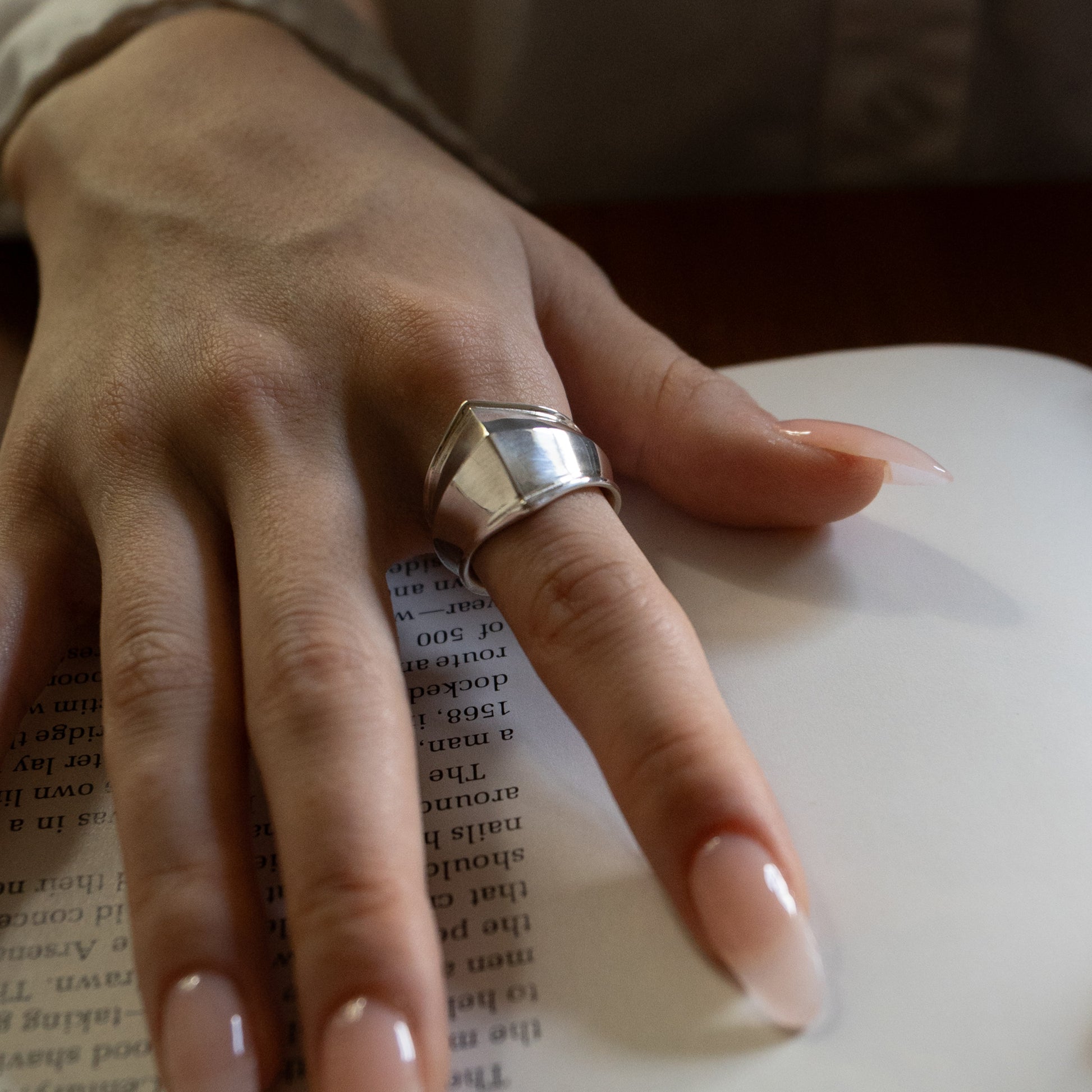 Hand-carved in wax and inspired by the powerful silhouettes of arms and armor at The Metropolitan Museum in New York City. This piece carries the spirit of strength and protection, translated into contemporary jewelry form.