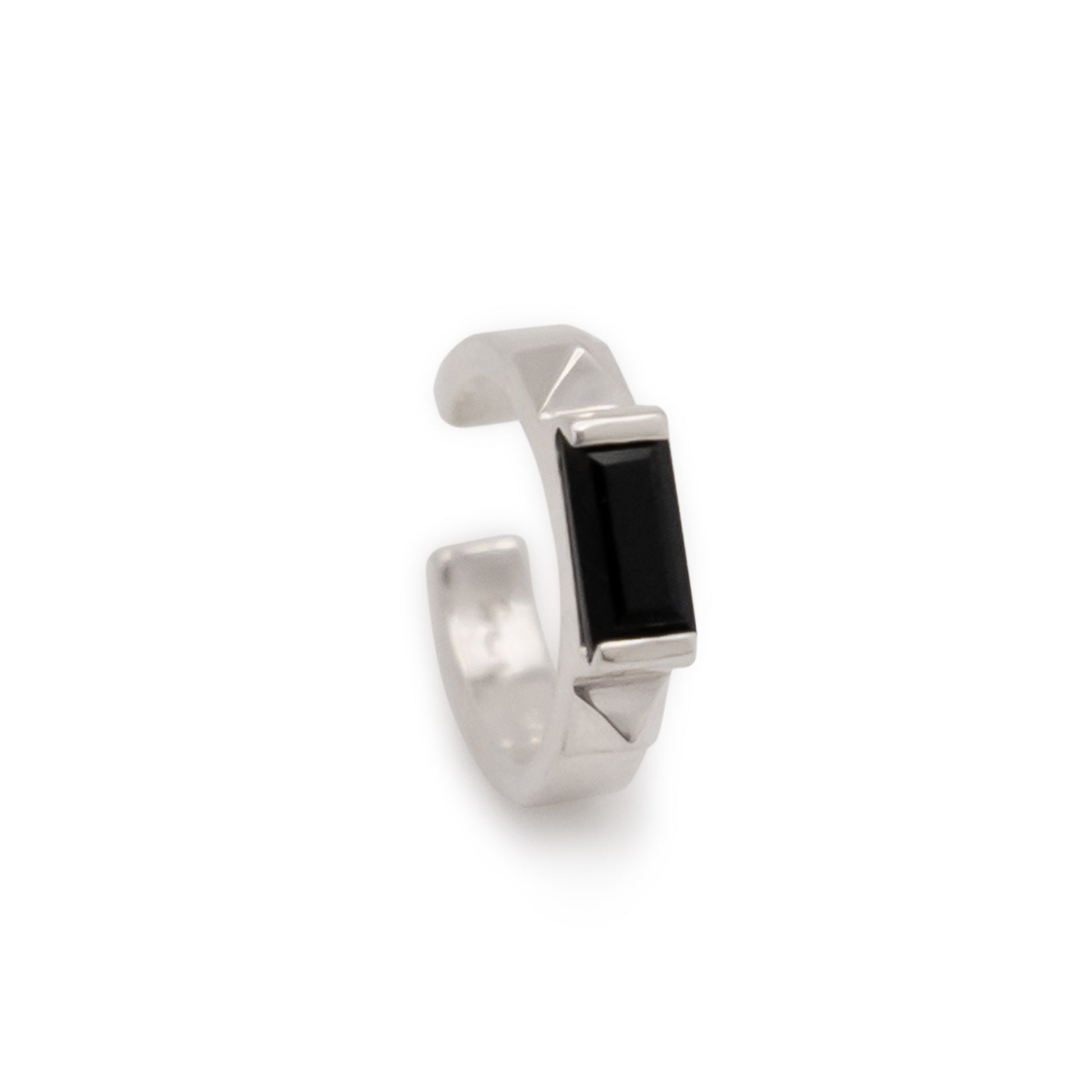 Sterling silver Ear cuff featuring baguette-cut onyx or garnet and double spike details. Hand crafted in Brooklyn, New York. Punk rock inspired design adds edgy finish to your style.