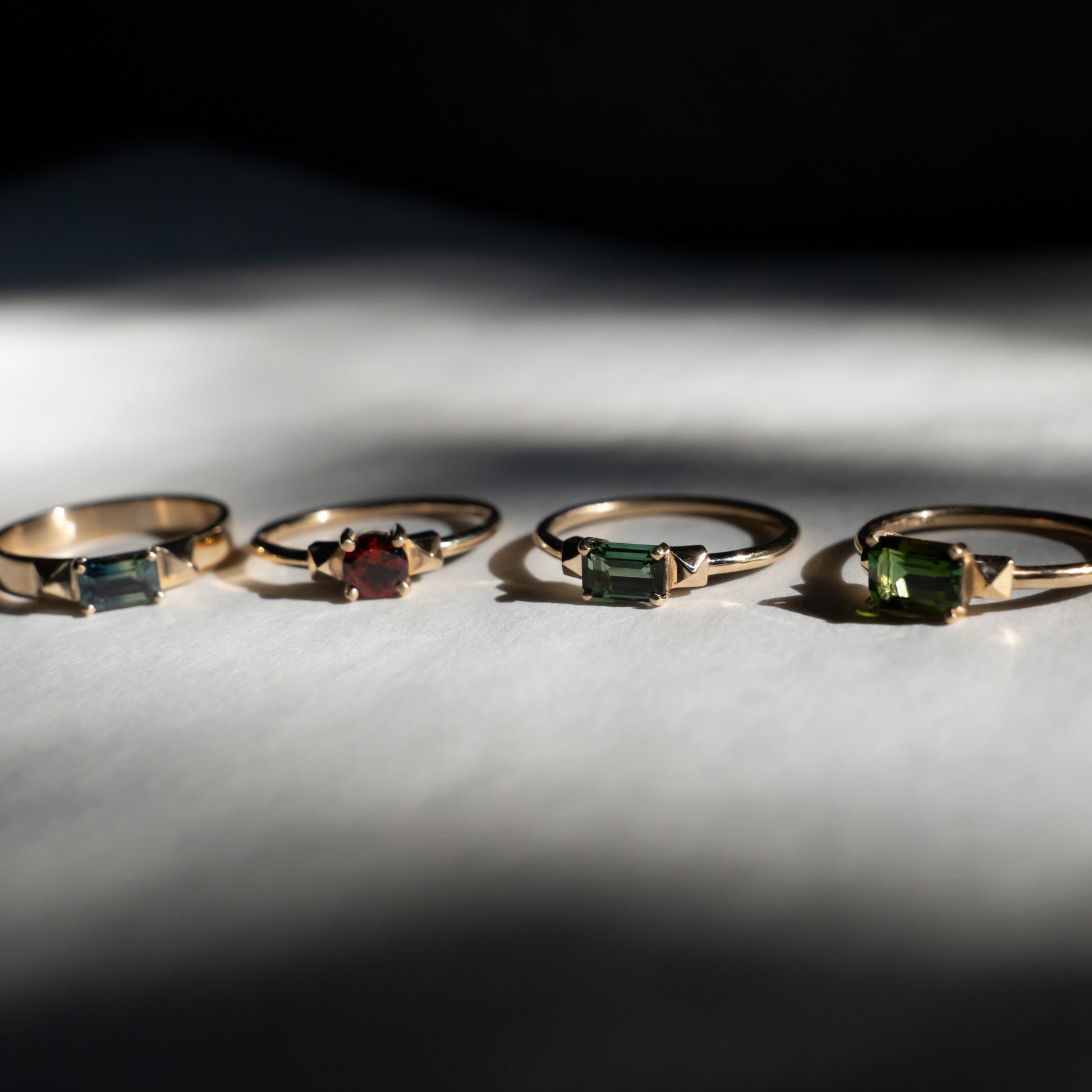 Modern future heirloom. 14k yellow gold ring with emerald cut tourmaline with spikes. Hand crafted in Brooklyn, New York. Punk rock inspired design.