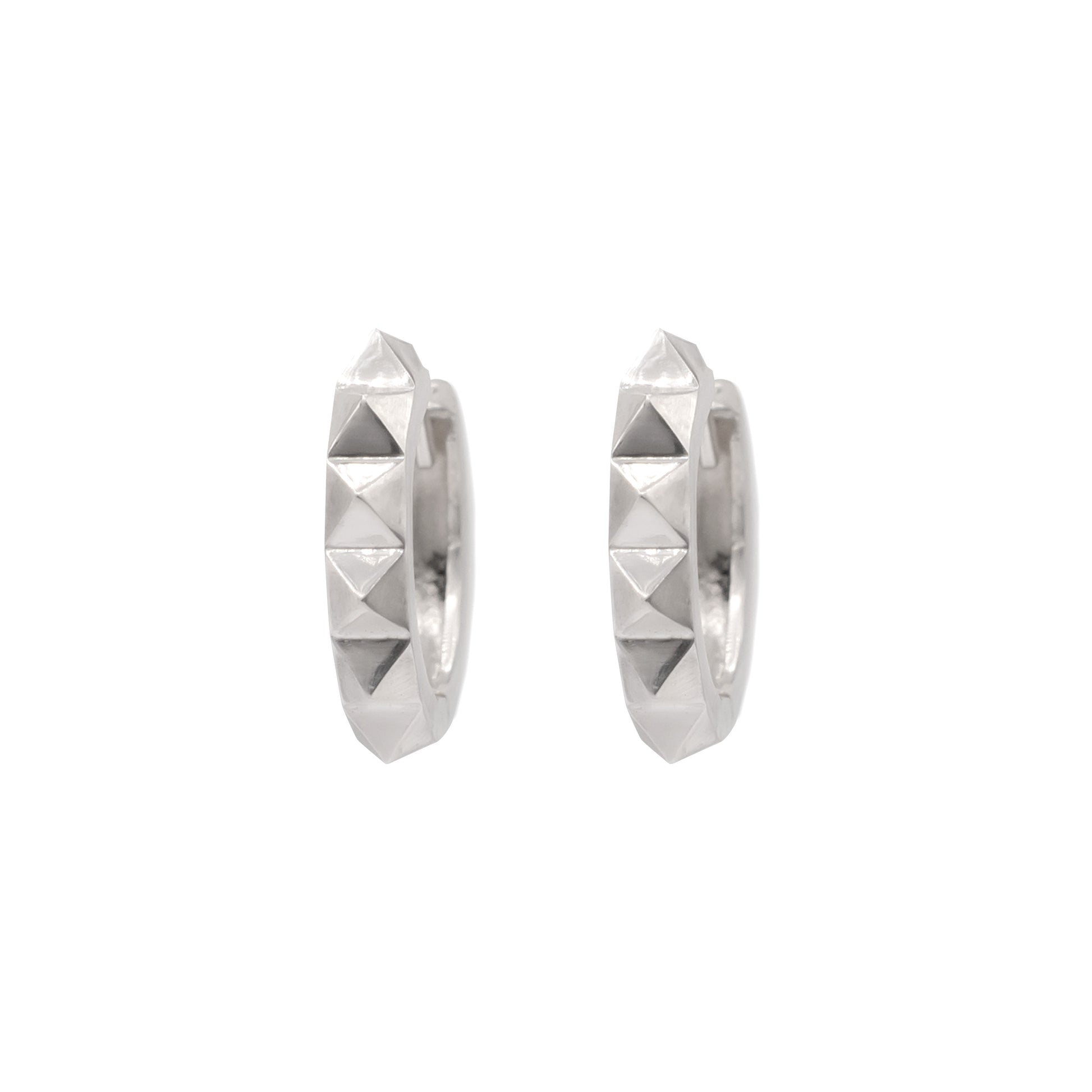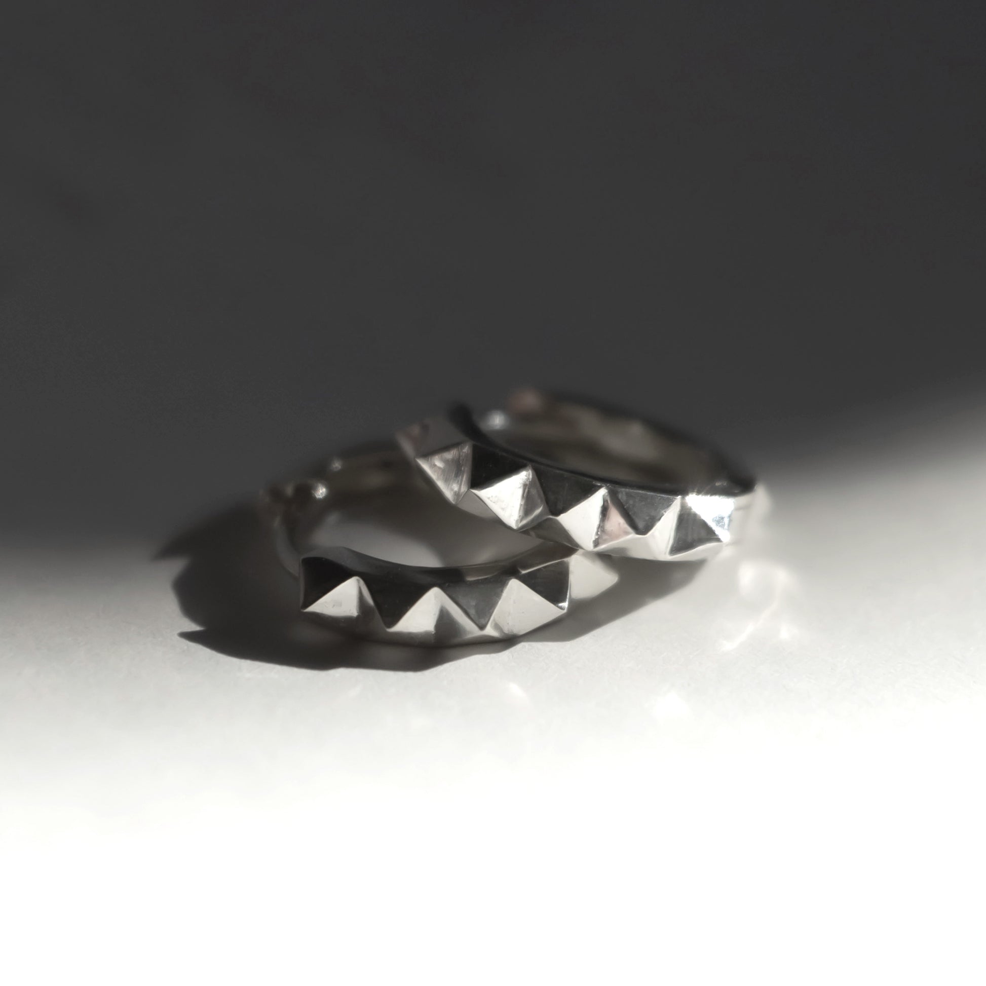Sterling silver huggie hoops with spikes. Hand crafted in Brooklyn, New York. Punk rock inspired design adds edgy finish to your style.