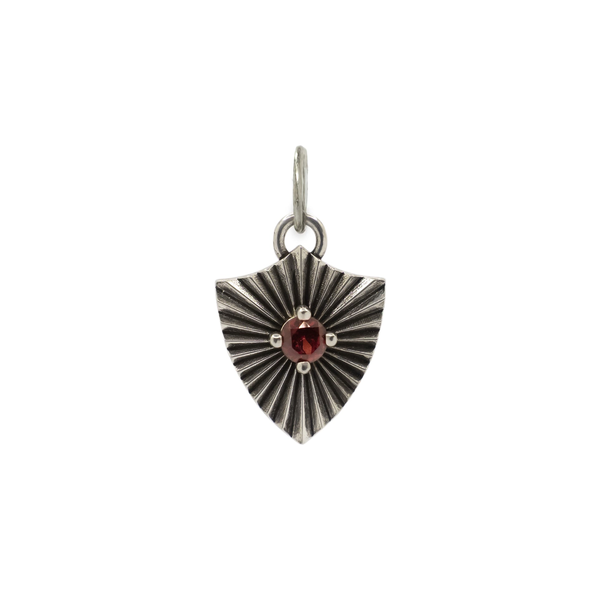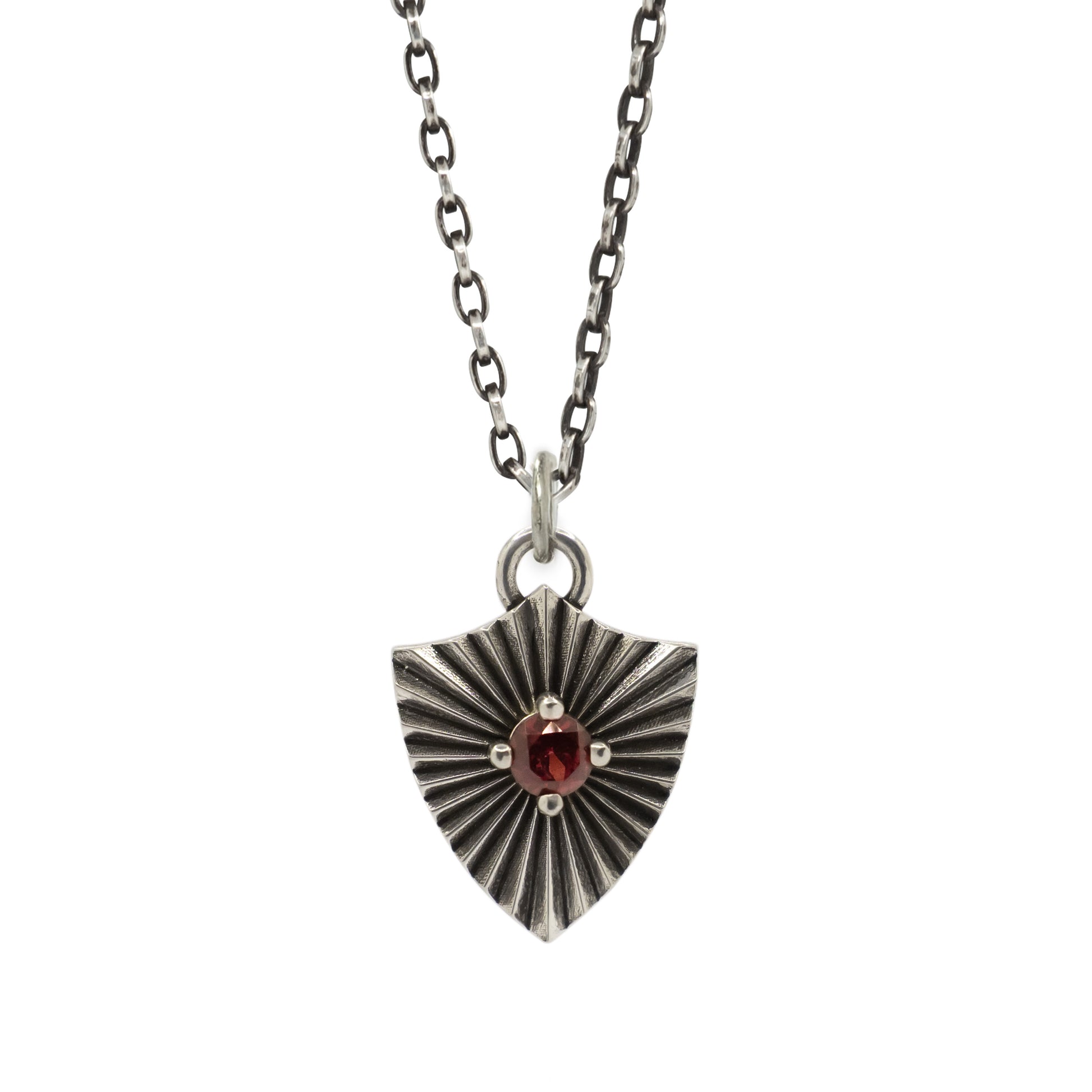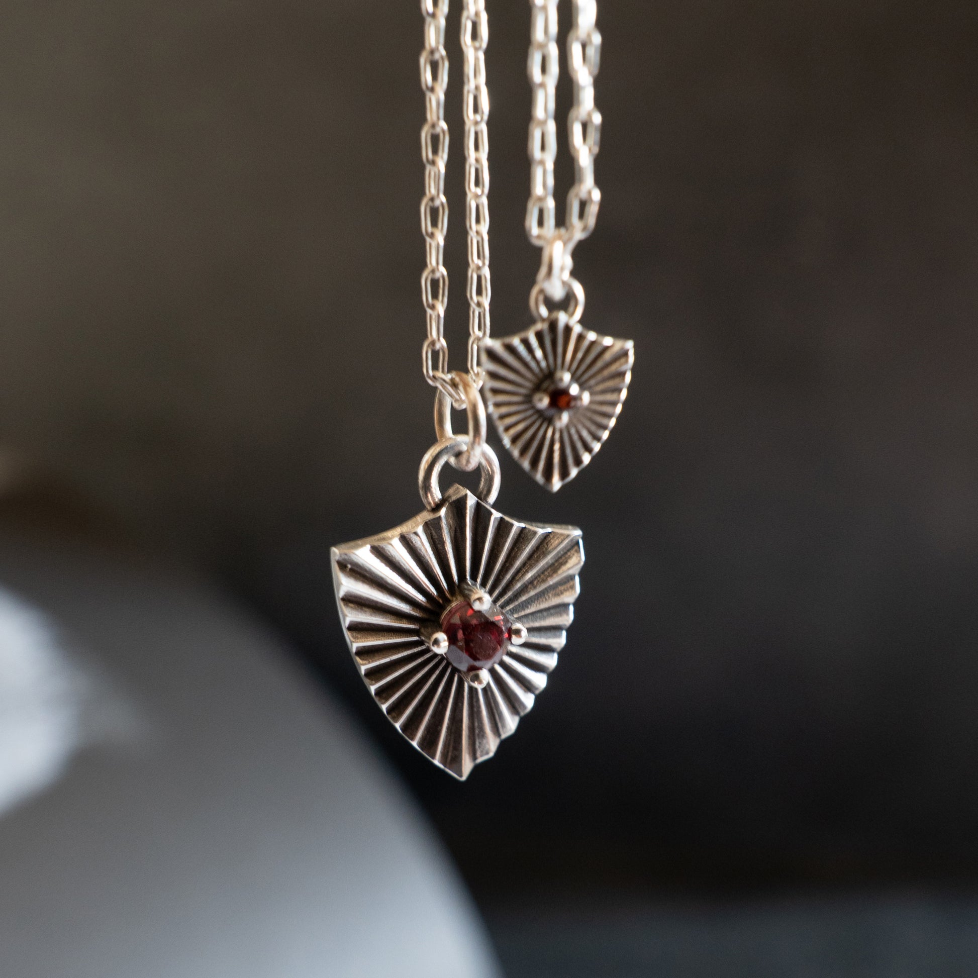 Shield Necklace with Garnet (Large) - Sterling Silver